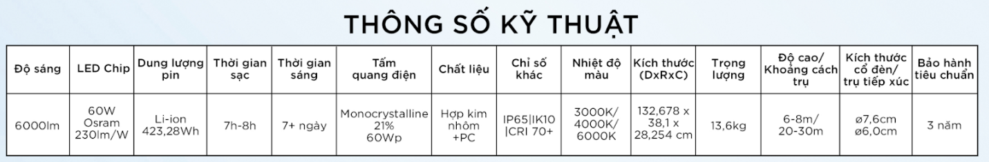 This type of light typically uses energy-saving LED bulbs with a long lifespan and high brightness, providing clear, comfortable lighting. Integrated solar lighting systems are well-suited for outdoor areas such as gardens, parks, streets, and industrial premises. The automatic on/off feature, controlled by light sensors, also contributes to significant energy savings.
