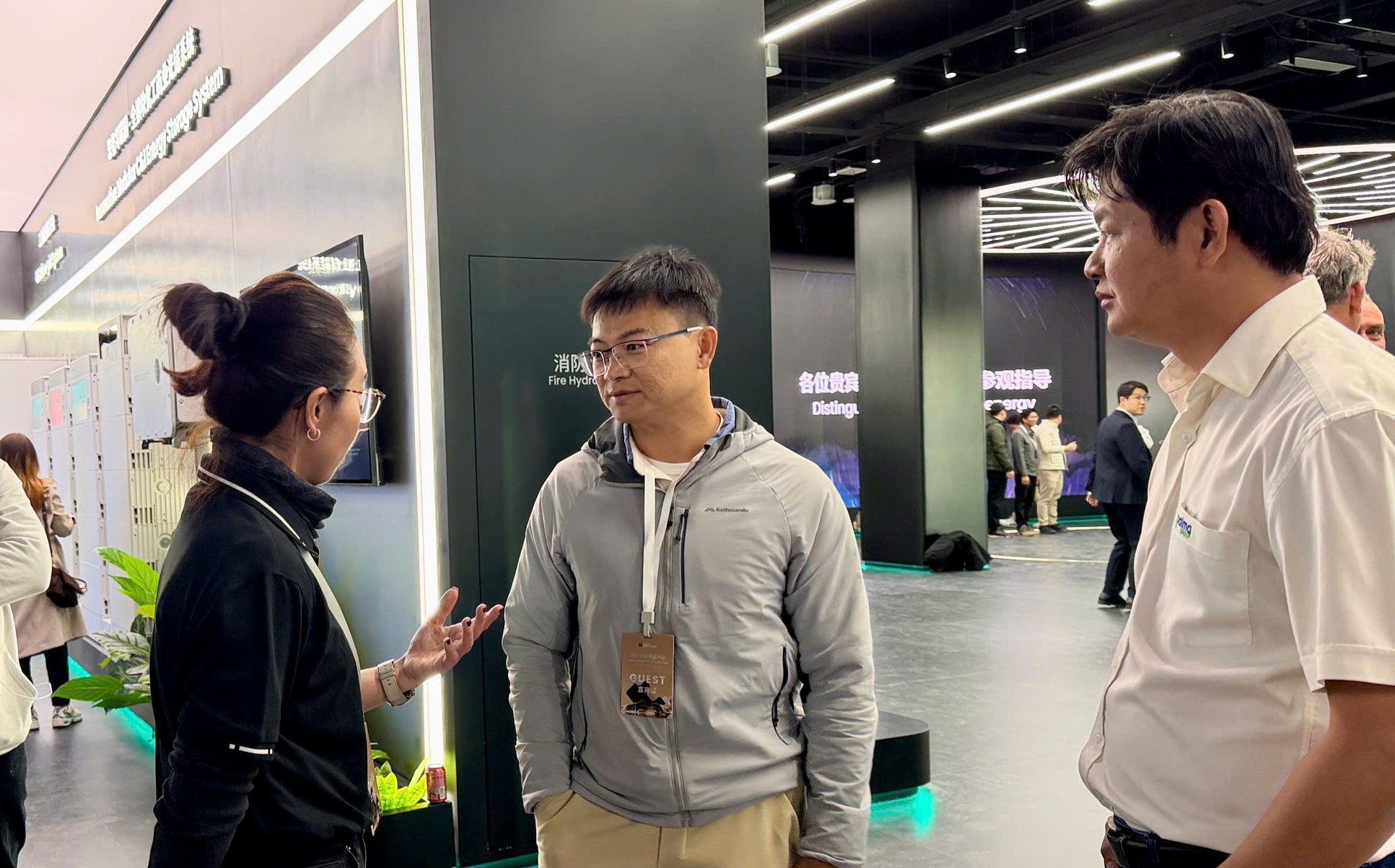 Hình: Đoàn Palma Group trao đổi và tìm hiểu các giải pháp công nghệ tại khu trưng bày của Sigenergy.
